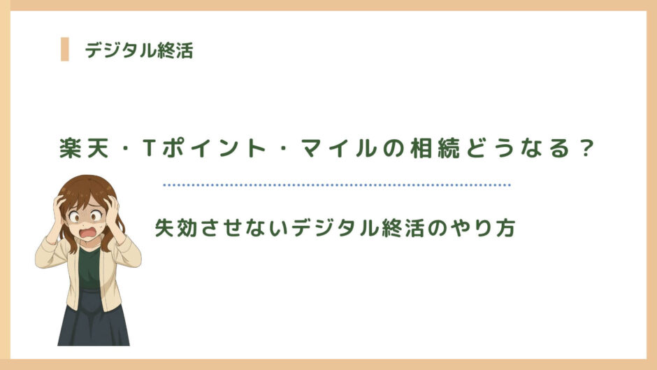 ここでは、「ポイントやマイルはそもそも相続できるのか?」「楽天やTポイントの規約には何と書かれているのか?」「現実にはどのようなトラブルが起きているのか?」といった点を掘り下げながら、大切なデジタル資産を失わないために何をすればよいかをご紹介していきます。