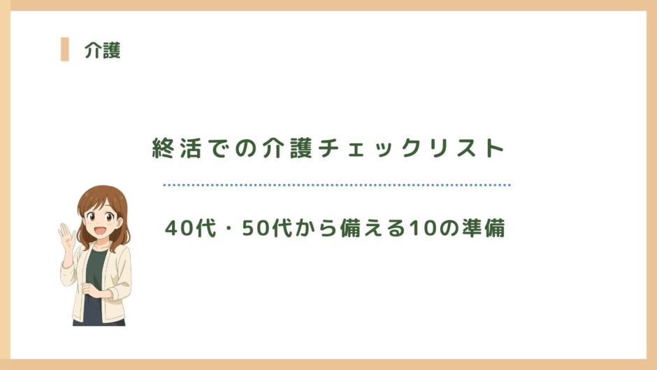 本日は終活を進める上で絶対に知ってもらいたい「終活での介護チェックリスト|40代・50代から備える10の準備」について解説をしていきます。
