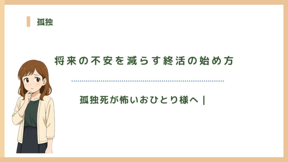 おひとり様にとっての終活は、年齢ではなく「一人で生活している」という状況そのものに向き合う行動です。早い段階から考え始めることで、孤独死への恐怖を現実的な備えへと変えていくことが可能になります。