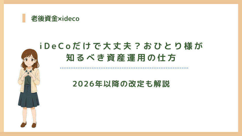 ここからは、おひとり様がiDeCoだけに頼ることへ不安を抱く理由を丁寧に見ていきます。