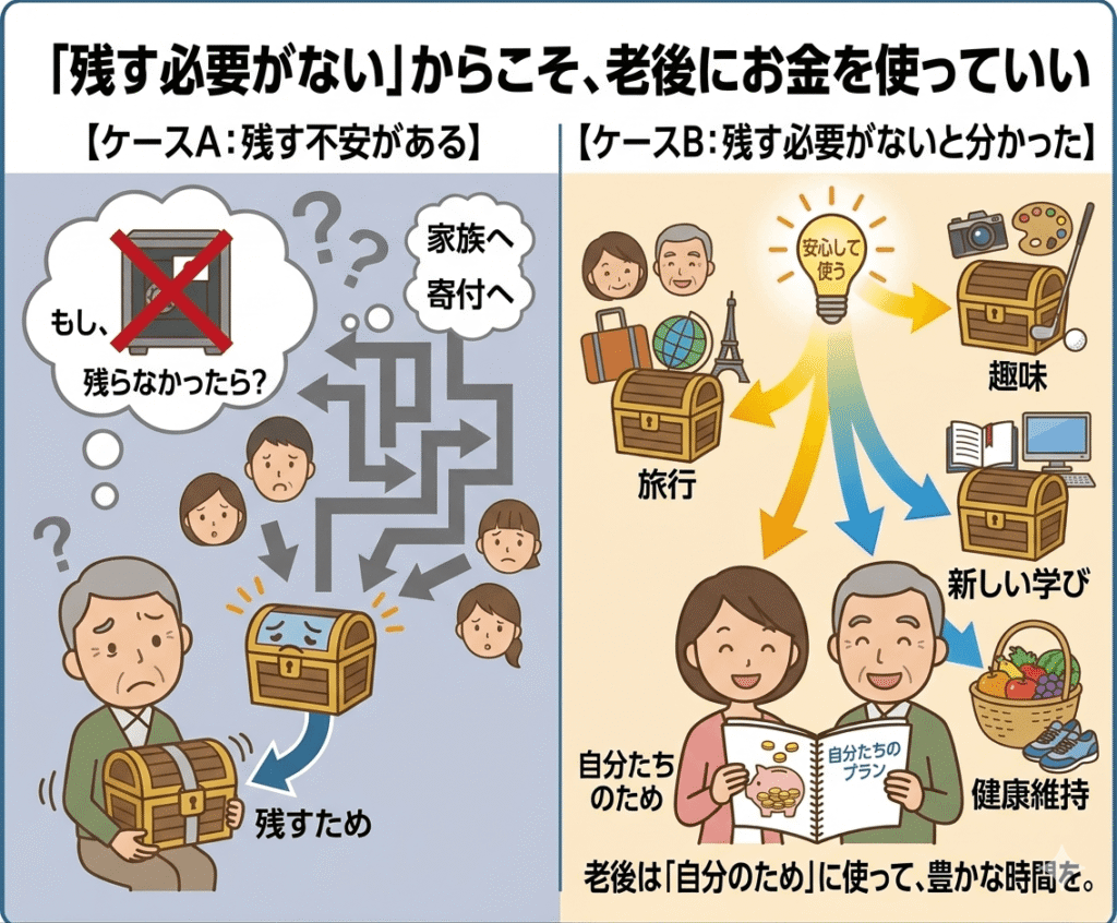 「残す必要がないなら、自分のために使おう」という発想の転換が、豊かな老後への第一歩になります。