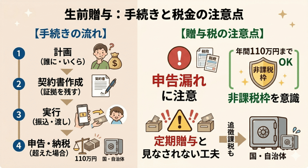 手続きの流れと贈与税の注意点