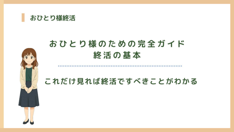 本日は「終活」を進める上で絶対に知ってもらいたい「おひとり様のための完全ガイド|終活の基本」について解説をしていきます。
