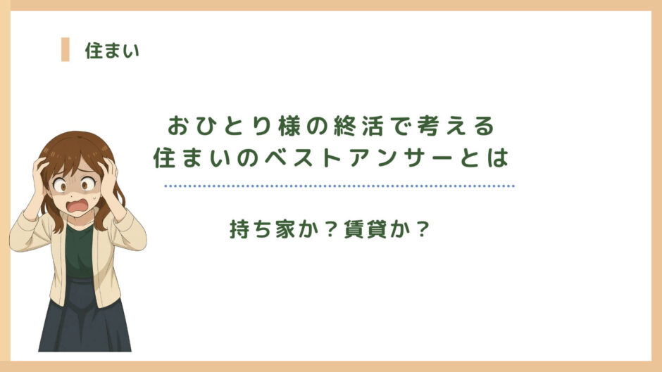 おひとり様の終活において、持ち家を選ぶという選択は安心感と同時に一定の覚悟を伴う判断になります。